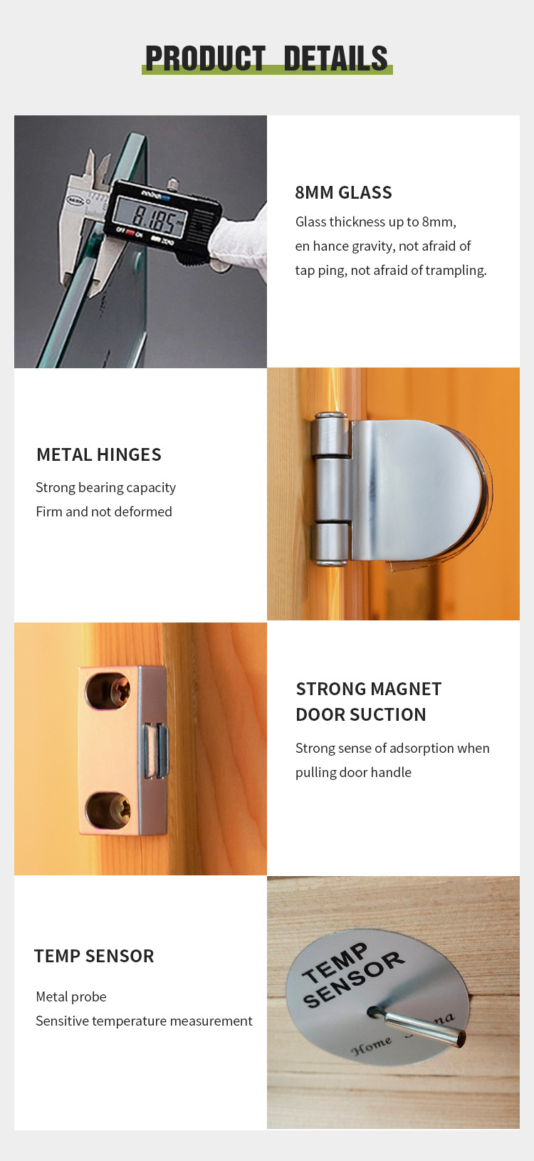 Sticlă securizată de 8 mm: După cum se arată în detaliile produsului, camera de saună cu infraroșu și cu aburi din lemn pentru 1-3 persoane are sticlă călită cu grosimea de 8 mm. Se mândrește cu o durabilitate excepțională, sporind rezistența gravitației. Nu trebuie să vă faceți griji în legătură cu atingerea sau călcarea în picioare – este construit pentru a rezista utilizării zilnice.