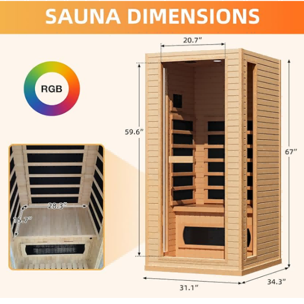 Corpul său compact (de obicei, măsurând aproximativ 100 × 80 × 190cm) este potrivit pentru spații mici, cum ar fi case și apartamente, și este ușor de instalat și conectat pentru utilizare. Echipat intern cu bănci confortabile și design de plasă respirabilă, cuplat cu un sistem inteligent de control al temperaturii (interval de temperatură reglabil de 30-65 ℃), durata poate fi setată în funcție de nevoi (0-60 minute), echilibrarea siguranței și confortului.