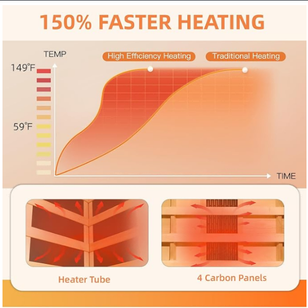 Tehnologia eficientă de încălzire eficientă】 Echipat cu 4 panouri de carbon și 1 tub de carbon, sauna noastră cu infraroșu de 1 persoană asigură încălzire înconjurătoare la 360 de grade, asigurând chiar și distribuirea căldurii. De obicei, se încălzește în doar 10-15 minute, permițându-vă să vă bucurați fără întârziere a experienței dvs. de saună.