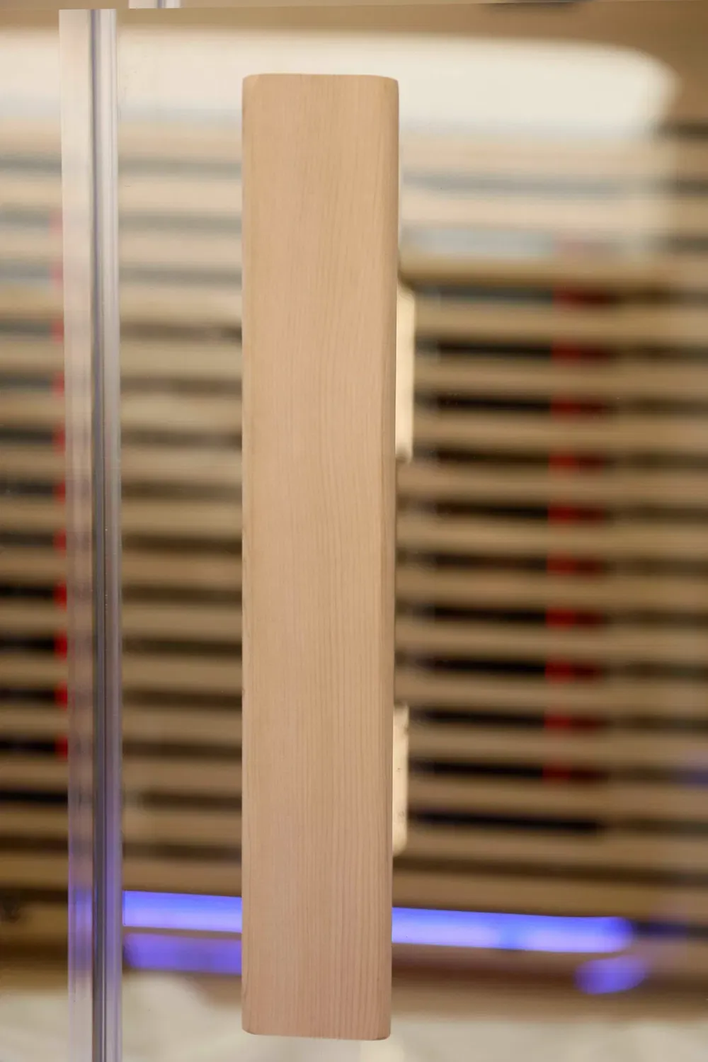 • Construit din lemn masiv de Hemlock canadian importat, cu o textură densă și robustă, granule naturale clare și un parfum slab de lemn natural care creează o atmosferă de saună confortabilă și senină;