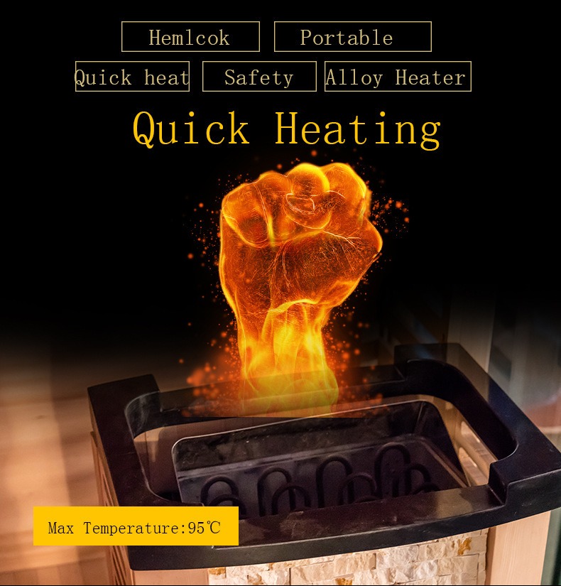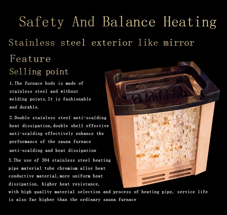 În plus, încălzitorul de saună este echipat cu un dispozitiv de protecție la supraîncălzire care se oprește automat atunci când temperatura depășește pragul de siguranță, dublu garantând eficiența încălzirii și siguranța utilizatorului.
