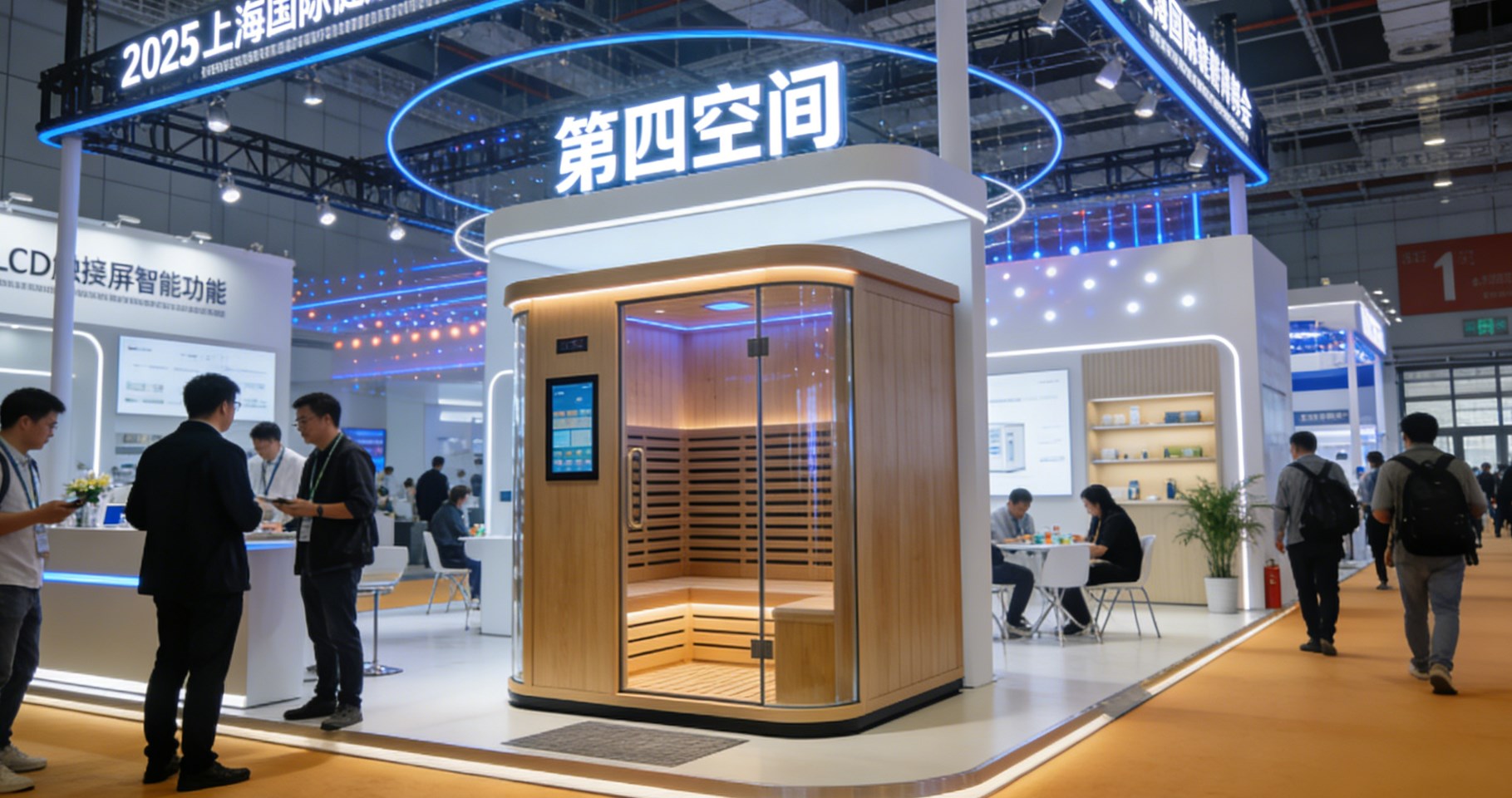La recent încheiată 2025 Shanghai International Health Industry Expo, conceptul „Al patrulea spațiu”.camera de saunaexpuse de companii precum Xuzhou Kangzhiyuan a atras atenția. Produsul este echipat cu ecran tactil LCD, interfață de transmisie live Tiktok și funcție de reglare a temperaturii vocale, care acceptă curba de temperatură definită de utilizator și sistemul de parfum (cum ar fi eliberarea uleiului esențial de iarbă de lămâie la 60 ℃, schimbarea parfumului de cedru la 80 ℃) și poate chiar conecta toaleta inteligentă pentru a monitoriza compoziția transpirației.