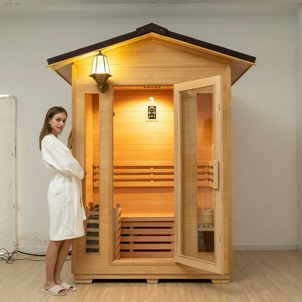 Sistemul tradițional de încălzire a sobei de saună restabilește experiența clasică de saună cu aburi. Echipat cu un sistem inteligent de control al temperaturii, poate regla cu precizie temperatura si durata aburului, asigurandu-se ca fiecare sauna ajunge in starea ideala. Aburul este abundent și uniform distribuit, iar căldura caldă înfășoară întregul corp, creând un mediu de saună confortabil și plăcut. Designul ușii din sticlă Fengshui este ingenios, care este transparent și frumos, implicând în același timp bun augur. Lampa de perete retro (model impermeabil pentru exterior) instalată lângă ușă emite lumină caldă și moale atunci când este aprinsă noaptea, iar lampa de joasă tensiune anti-explozie din interior asigură o utilizare în siguranță, dând dovadă de atenție în fiecare detaliu. Tensiunea acceptă personalizarea globală, iar cu un cablu adaptiv de mare putere, utilizarea energiei electrice în exterior este sigură și fără griji.