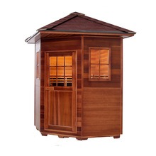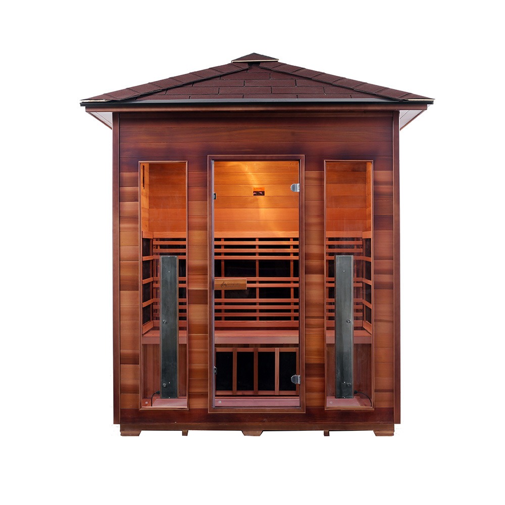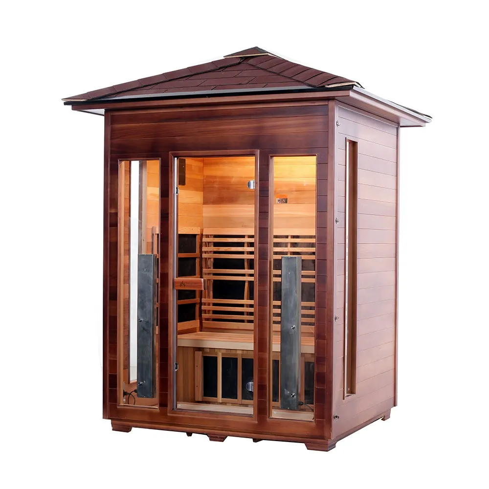 Această saună în aer liber este realizată din cedru roșu de vest canadian sau cucută canadiană. Lemnul are rezistență la coroziune și umiditate, precum și stabilitate structurală. Echipat cu tehnologie de încălzire cu fibră de carbon cu infraroșu îndepărtat, se încălzește rapid și distribuie uniform căldura. Potrivit pentru medii exterioare, cum ar fi curți, balcoane, grădini de vile, zone de lângă piscină și stațiuni.